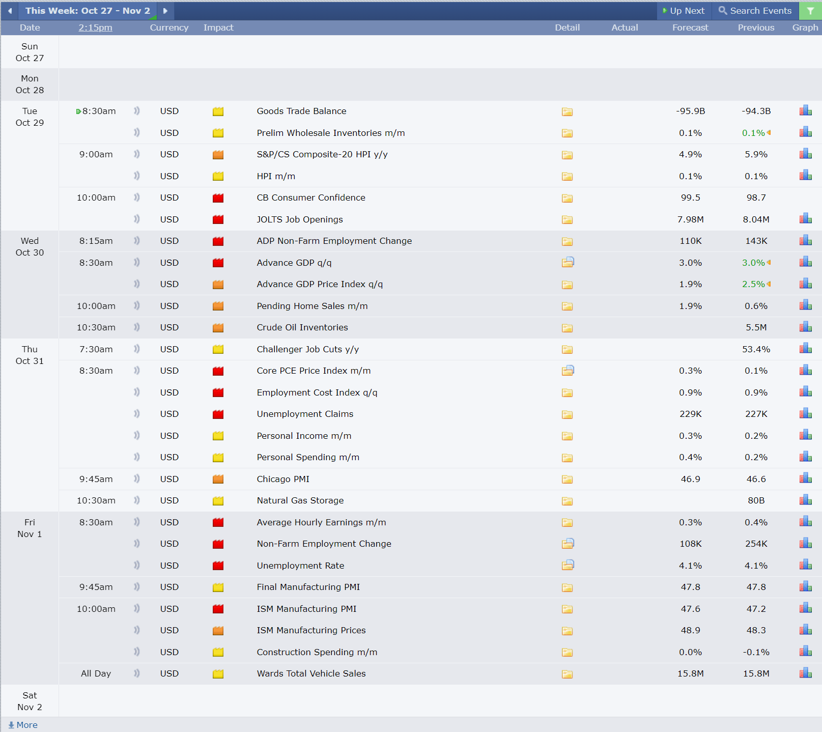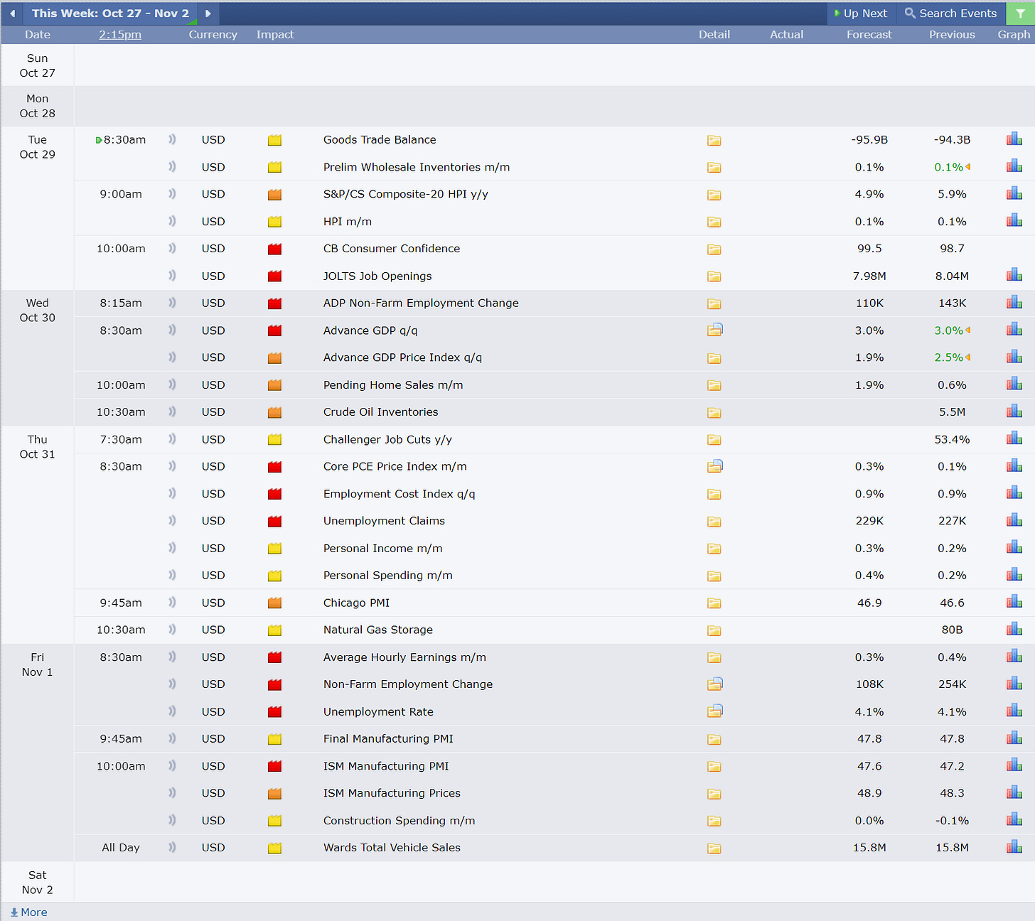 The upcoming week brings a robust lineup of job and economic data. The main focus will be on the Personal Consumption Expenditures (PCE) report on Thursday—widely regarded as the Fed’s preferred measure of inflation—and Friday’s job numbers. The prior jobs report surprised with a notable increase, coming in over 100K above estimates, and the unemployment rate dipped to 4.05%. Friday’s release will be closely watched to see if this upward trend in job growth holds or if it was a temporary spike. The data is especially timely, with the elections and an FOMC meeting right around the corner.