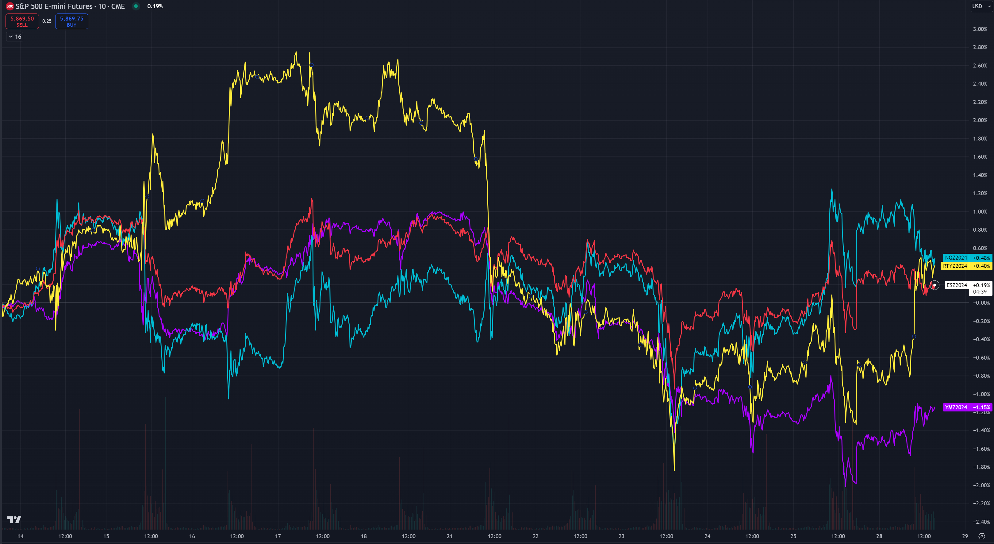 Midweek volatility in the S&P 500 wasn’t spurred by any one event but was instead influenced by surging dollar and 10-year Treasury yields as financial conditions tightened sharply. At one point, the index was nearly down by 100 points, underscoring the broader market’s sensitivity to these pressures. This dip tested the resolve of bullish investors who have, for some time, operated on the assumption of “markets only going up.” The critical support levels—just below recent all-time highs around 5750/5760 on the SPX—held strong, with the index rebounding precisely from this level, in line with the August support trendline.