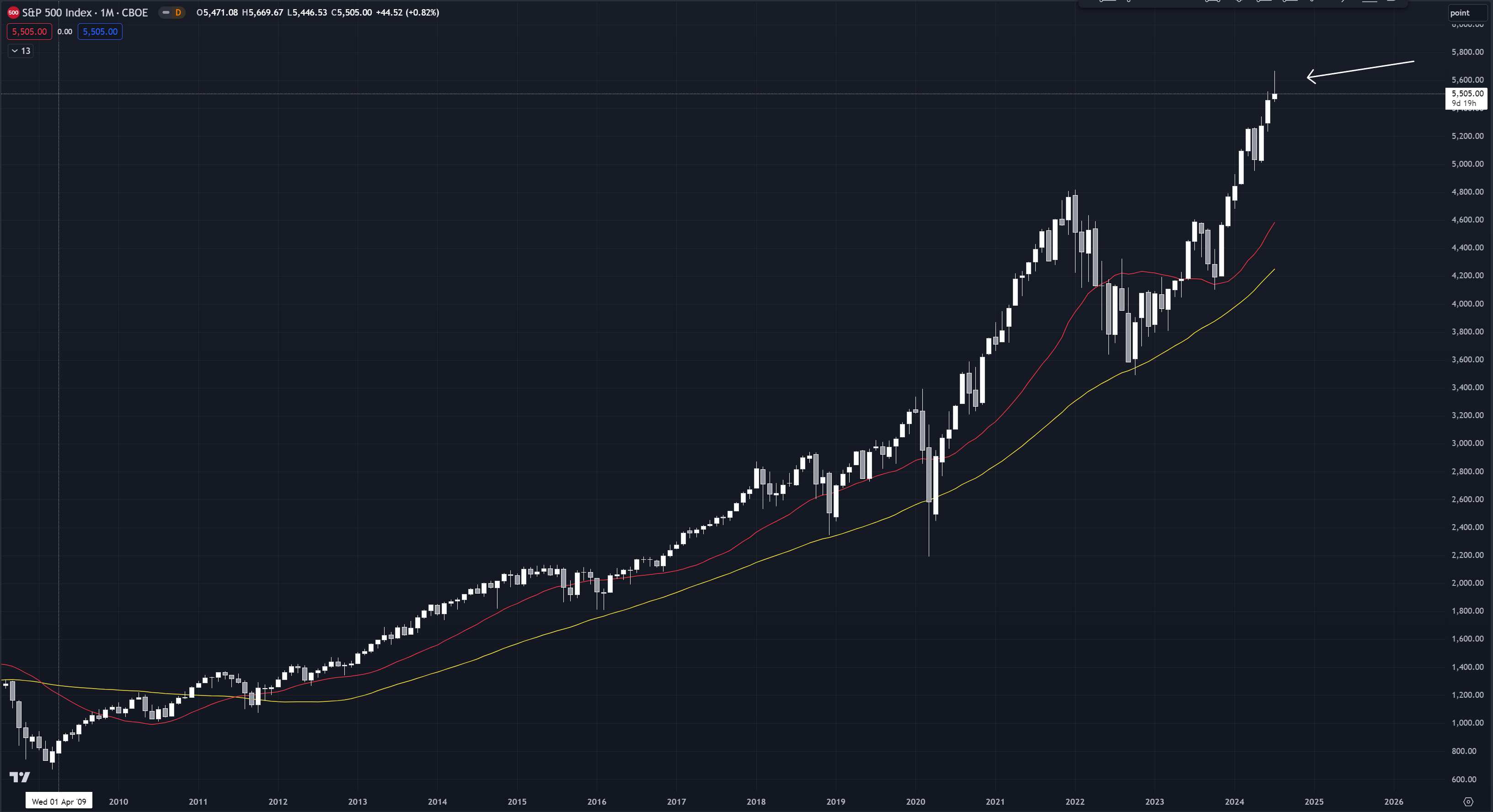 SPX Monthly Candles: 21 and 50 month moving averages