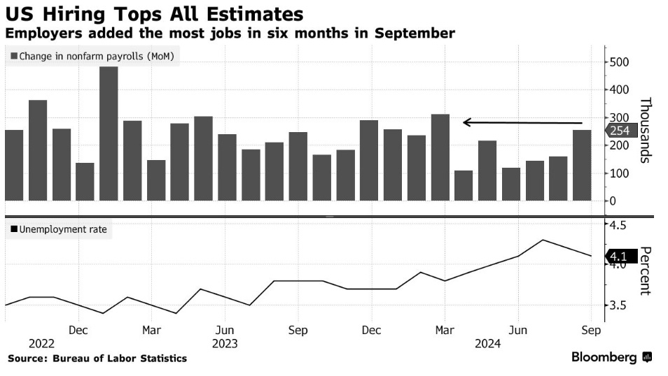 Friday’s jobs report was the standout event of the week. While expectations were set at 150,000, the actual number came in at a robust 254,000, accompanied by a downtick in the unemployment rate (UER) from 4.2% to 4.1%, narrowly missing a clean 4.0% mark. Additionally, prior reports were revised upward, a shift from the recent trend of downward revisions.