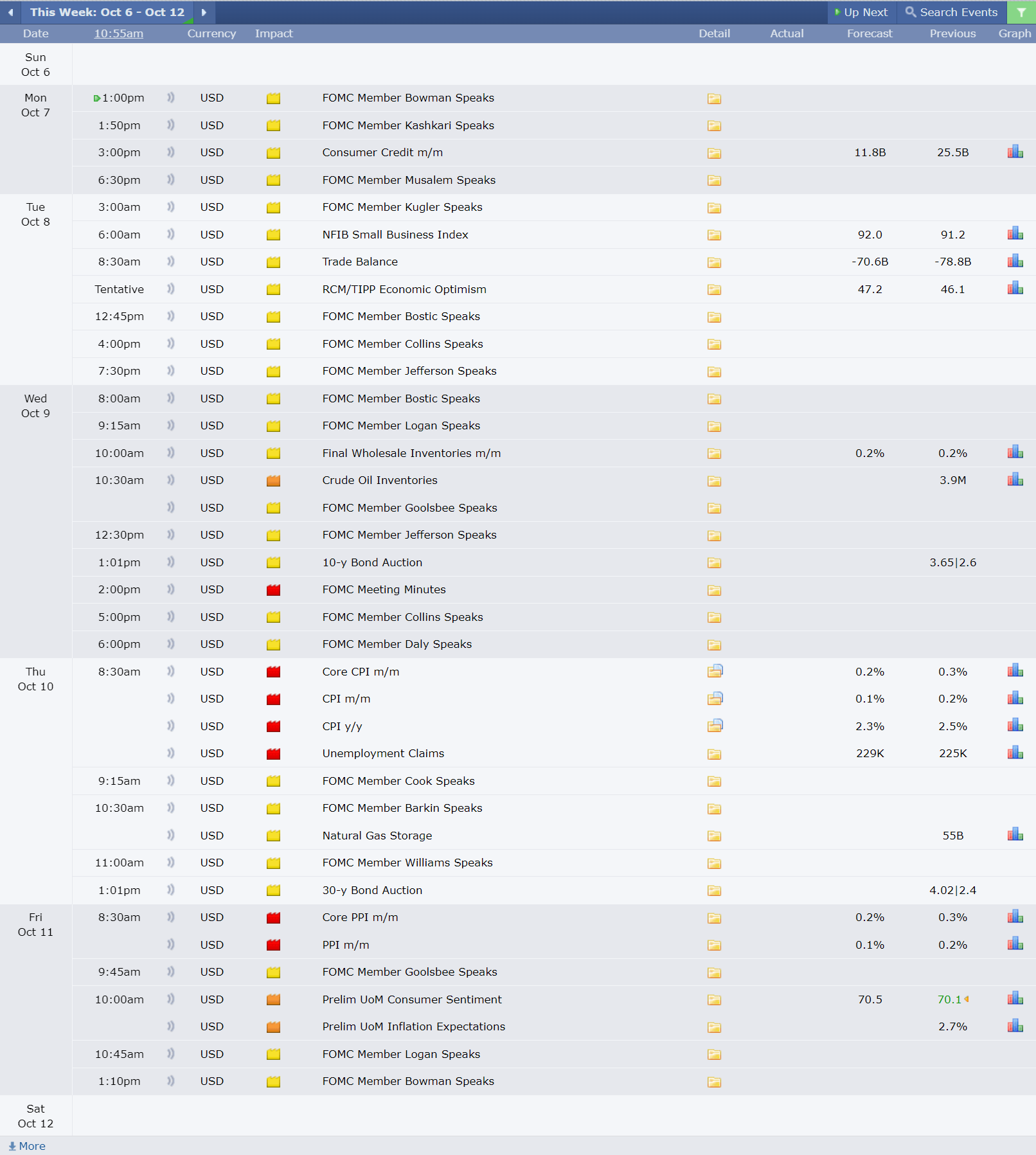 The coming week looks relatively quiet on the economic front. Notable events include several bond auctions and the release of FOMC minutes on Monday, which are generally uneventful. However, the spotlight will be on the CPI and PPI numbers, which could provide critical insights into whether inflation has truly bottomed, particularly after the recent rebound in growth since early August.
