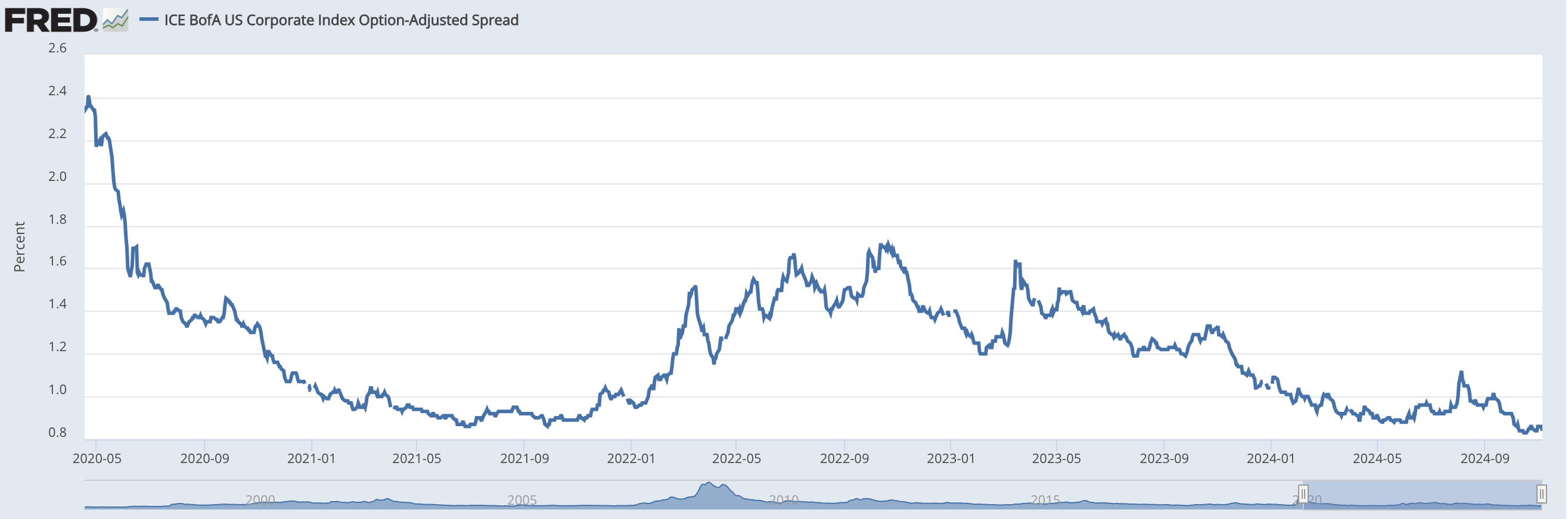 While bears cite rising yields as a cautionary signal, the tight spreads in U.S. investment-grade corporate bonds—a level not seen since 2005—suggest an alternative perspective: yields can rise due to growth, not solely inflationary concerns.